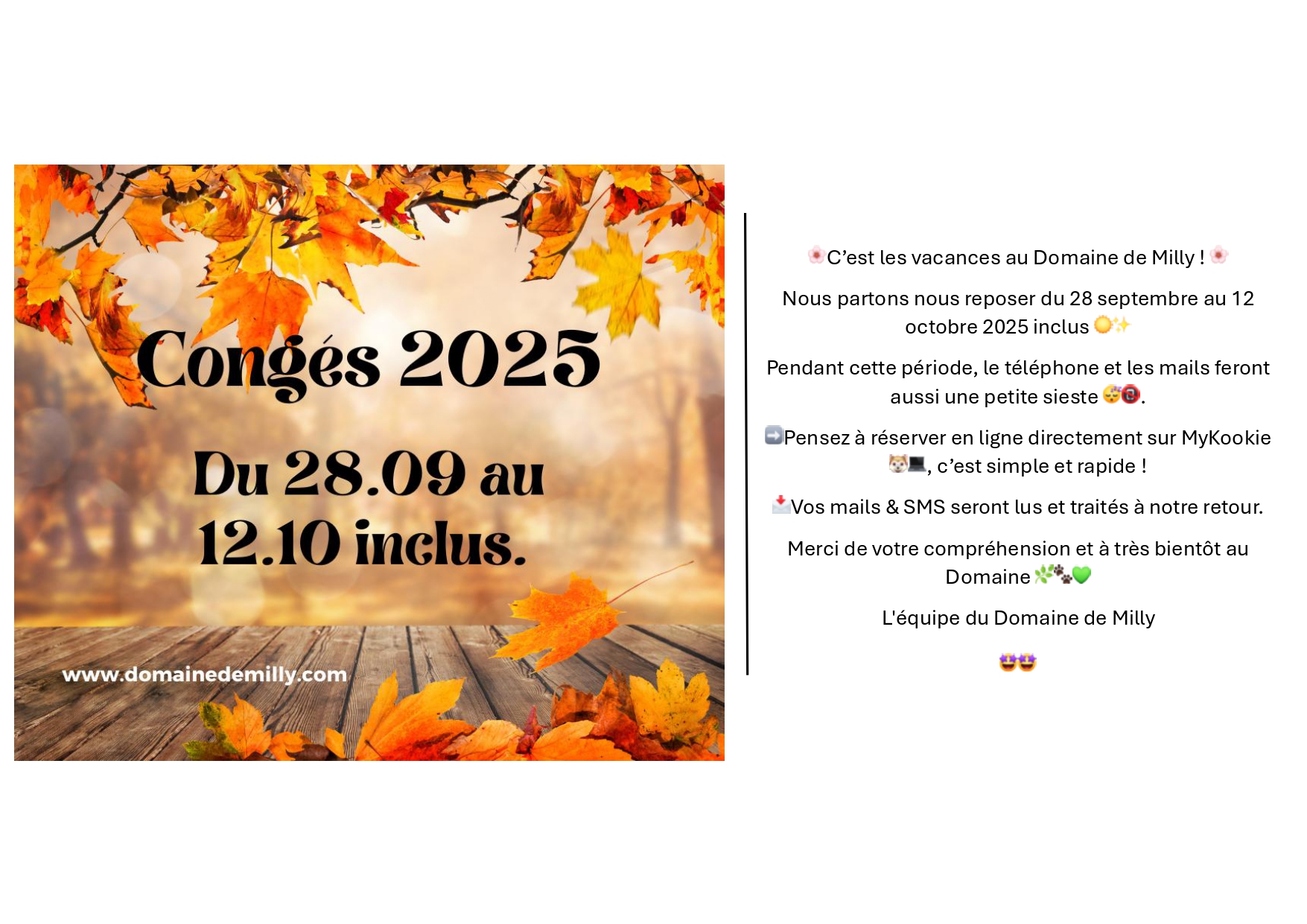 Le Domaine de Milly est ouvert du Lundi au Samedi de 15h00 à 18h45.